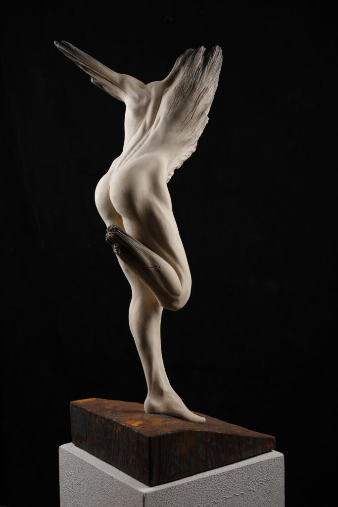 «La mia ricerca», spiega Raul Barattin, «indaga l’evoluzione della figura umana contemporanea e il suo rapporto con l’esistenza. Attraverso linee di forza che incidono la materia, la plasmano e la spingono fino al limite della corrosione, costruisco presenze che nascono da un dialogo intenso tra forma ed energia. La figura si frammenta, sul piano concettuale e materico, diventando dinamica, in azione e al tempo stesso in riflessione. Le mie creature conquistano lo spazio con impeto, lo avvolgono e vi si espandono come esplosioni primordiali di corpi celesti, generando una tensione continua tra densità e movimento.»